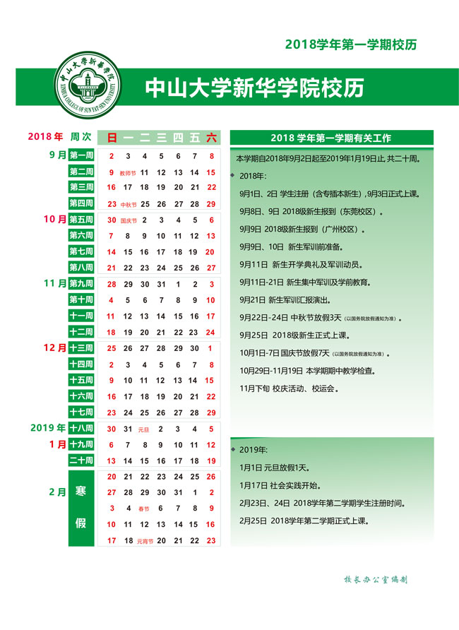 学校网页公布校历链接:http://www.xhsysu.edu.cn/web/xh/tzgg/28718.html
