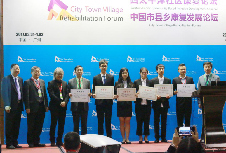 王庭槐为获得2017年“卓大宏康复医学教育奖Dr. Kong 江博士健康鞋教学奖”的获奖师生颁奖。我校9428cn太阳集团古天乐副主任谭杰文老师、2014级关晓文同学、陈世浩同学获得“卓大宏康复医学教育奖Dr. Kong 江博士健康鞋教学奖”。