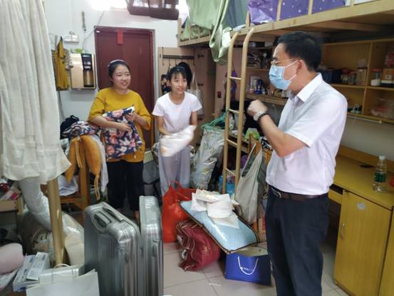 谭杰文主任在宿舍了解同学们返校情况