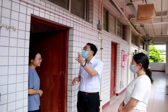 谭杰文副主任、刘静丽副书记在宿舍了解同学们返校情况 党委宣传部(新闻中心)供图