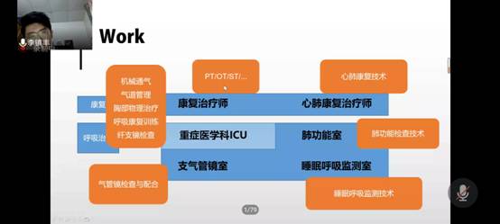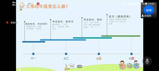 首先进行经验分享的是李镇丰师兄,李镇丰师兄不仅仅向我们分享了他大学四年的学习经验,同时根据自己作为一名呼吸治疗师的角色,为我们讲述了呼吸治疗的发展现状、呼吸治疗师的工作地点以及呼吸治疗师所涉及业务范围,以此来增加师弟师妹们对呼吸治疗师的了解。师兄以自己的亲生经历来为师弟师妹们开路,希望我们可以少走弯路,多点收获。最后,师兄推荐了自己受益颇深的书籍以及公众号给师弟师妹们,希望可以帮助我们更加深入了解自己的专业,为将来就业奠定坚实的基础,也希望师弟师妹们尽早确定目标,并不断有计划的深入学习,最终成功的实现自己的梦想。