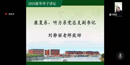 会议伊始,由康复系、听力系联合党总之副书记刘静丽老师致辞,对洪培伟和李镇丰师兄在百忙之中抽空参加本次会议表示热烈欢迎和衷心的感谢,也祝贺本次学子讲坛圆满的举行,由此拉开了本次线上会议的序幕。