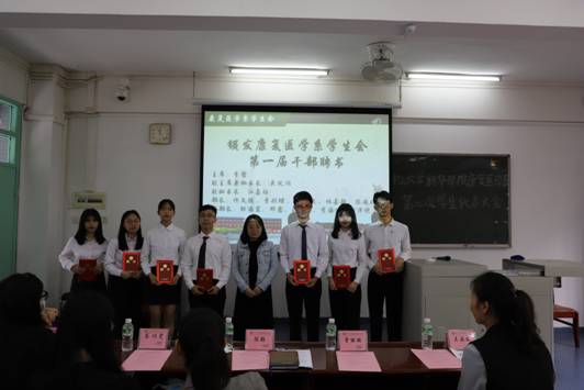 下面是本次大会的第五项议程,由刘静丽老师和吴亚丽老师颁发9428cn太阳集团古天乐学生会第一届干部聘书,对他们过去一年里的努力工作和辛勤付出给予了肯定,并表示感谢
