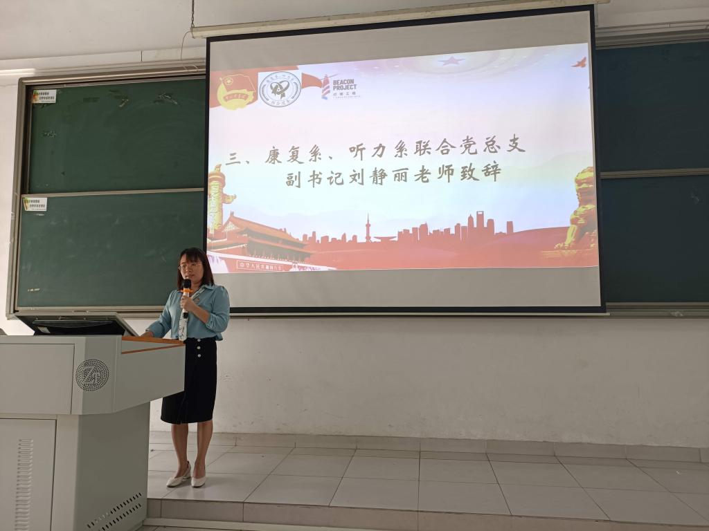 开幕式上,康复系、听力系联合党总支副书记刘静丽老师代表两系党政领导和师生员工,向大会的召开表示热烈的祝贺,并向勤奋学习、努力工作、为两系建设发展做出贡献的广大青年和同学们致以亲切的问候。刘静丽老师对两系联合团委过去的工作予以充分肯定,并对即将产生的第一届委员和青年朋友们提出几点希望:一、坚定不移跟党走。新时代共青团人任何时候、任何情况下都必须把自己置于党的领导之下,对党绝对忠诚,坚持旗帜鲜明讲政治,坚持“党有号召、团有行动”,坚持“党旗所指就是团旗所向”。二、为党和人民不懈奋斗。要积极应对新挑战,切实履行责任,努力增强新时期共青团工作的影响力,增强党在青年中的凝聚力和青年对党的向心力,推动青年朋友们与民族同命运、与祖国共奋进、与时代齐发展。