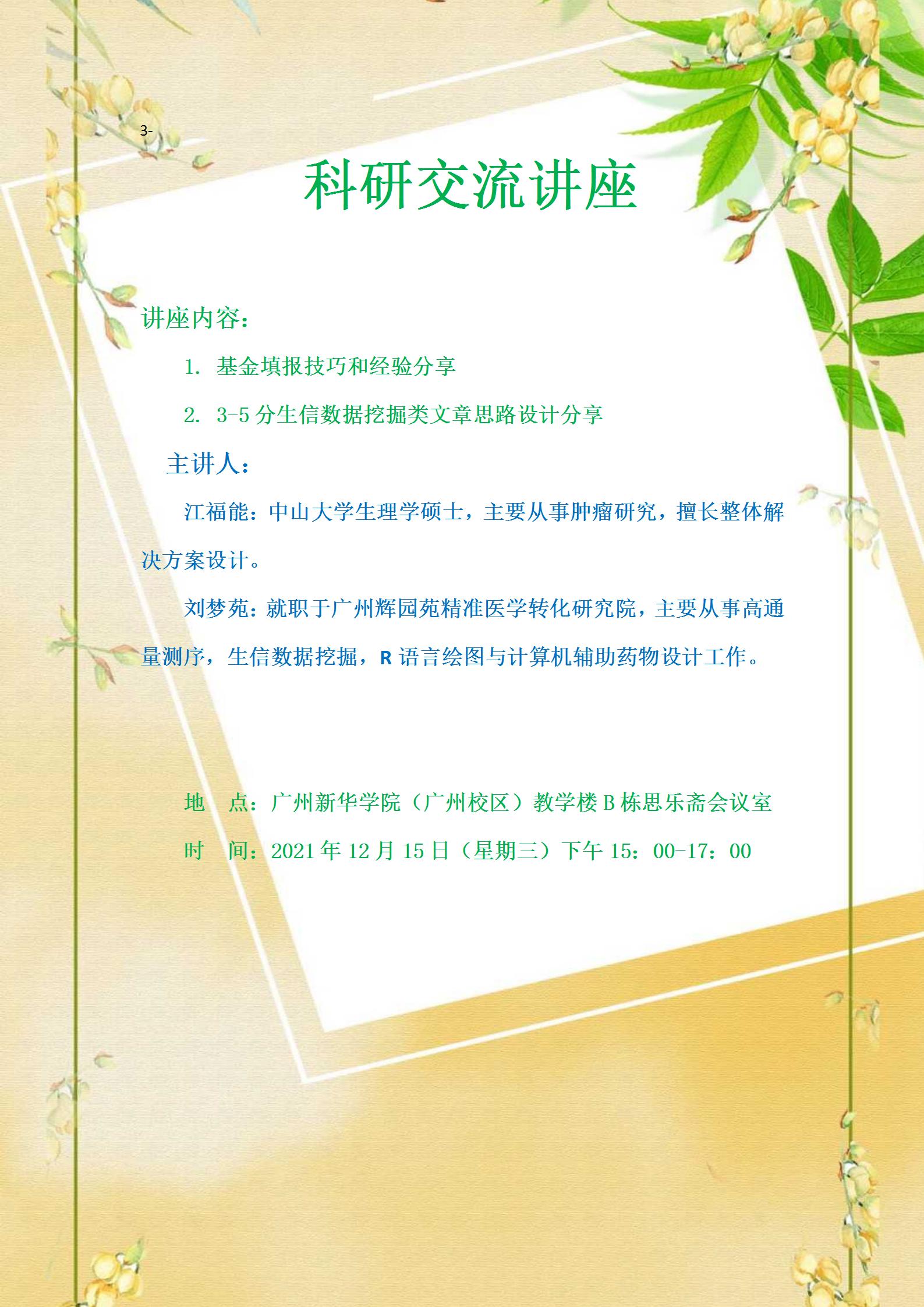 讲座时间:2021年12月15日(星期三)下午15:00-17:00