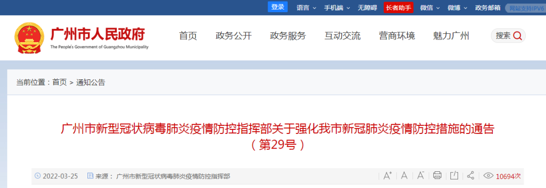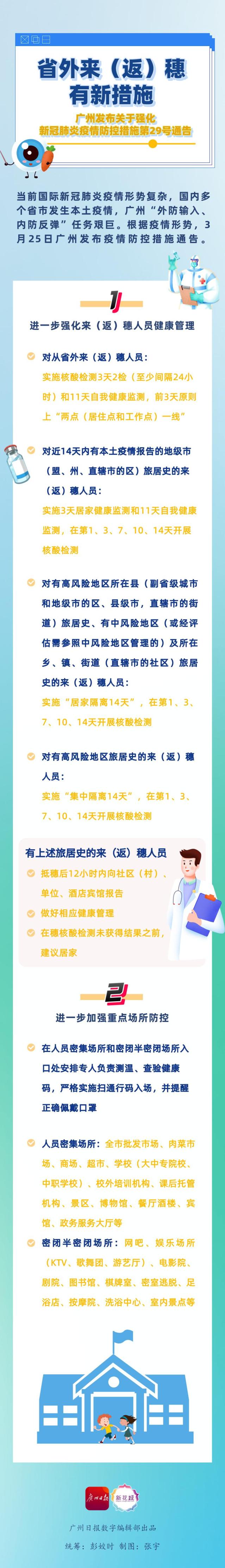 3月25日,广州市新型冠状病毒肺炎疫情防控指挥部发布关于强化我市新冠肺炎疫情防控措施的通告(第29号)。