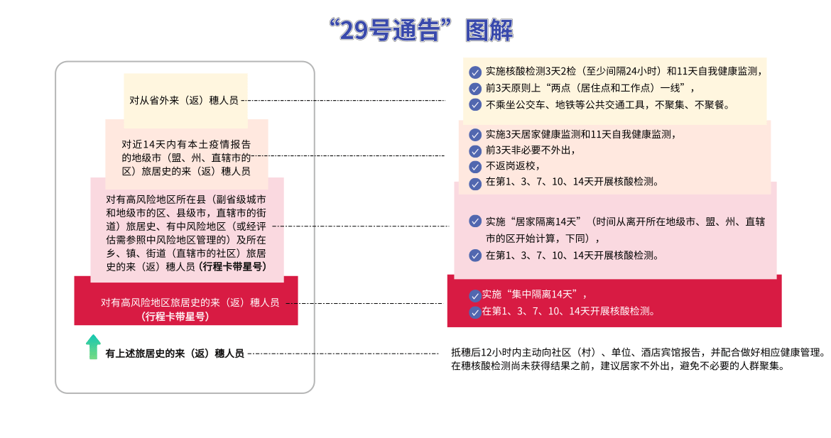 以上疫情防控政策来自广州市新型冠状病毒肺炎疫情防控指挥部关于强化我市新冠肺炎疫情防控措施的通告(第29号);其他措施按照我市新型冠状病毒肺炎疫情防控指挥部第28号通告执行。广州市疫情防控部门会根据最新的疫情动态和风险研判,实时调整相关管控措施,必要时会对部分涉疫地区来(返)穗人员采取提级管控措施,具体以我市疫情防控部门执行政策为准。