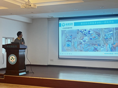 首先,虞容豪教授对我校来访表示热烈的欢迎,介绍了广州慈惠医院概况、发展历程与医院特色;同时还向大家介绍了广州慈惠医院的专家教授,强调了重症康复治疗一体化建设的发展情况以及重症救治结合高压氧治疗的发展发向,重点强调了对康复医学、呼吸治疗专业毕业生的岗位需求。