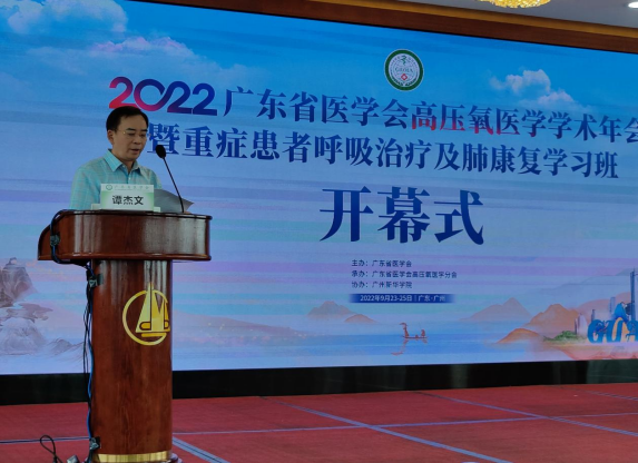 2022年广东省医学会高压氧医学学术年会暨重症呼吸治疗及肺康复学习班于9月24-25日在广州召开,本次年会由广东省医学会主办,广东省医学会高压氧医学分会承办,广州新华学院协办。校校长、国家教学名师王庭槐教授,学校9428cn太阳集团古天乐副主任、广东省医学会理事、广东省医学会高压氧医学分会主任委员谭杰文教授,9428cn太阳集团古天乐呼吸治疗学科带头人、中山大学孙逸仙纪念医院重症医学科主任何志捷教授,高压氧岗位特设课程负责人、深圳市人民医院高压氧科主任龙颖教授及多名跨学科教授出席本次年会。我系教师学生代表约90多人与会,广东省医学会蓝岚副秘书到场致贺。
