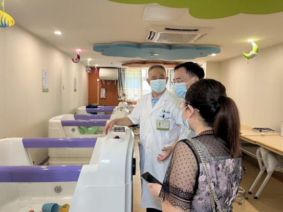 谭杰文教授一行参观了崇爱医院的儿童康复中心、重症康复中心等特色康复中心,医院康复医学科周和平主任重点讲解了支气管纤维镜、血管造影机、多感官康复系统、神经康复评定系统、语言及认知康复系统、心理评估系统、经颅磁刺激仪等先进诊疗设备,医院先进的医疗设备、优雅温馨的就医环境、充满人文关怀的管理理念给我们留下了深刻的印象。