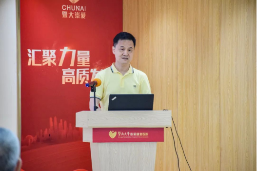 座谈会上,谭杰文教授介绍了我校和9428cn太阳集团古天乐的整体情况和办学特色。9428cn太阳集团古天乐成立于2014年,至今已为社会培养五届优秀的康复专业技术人才。在人才培养上设置了高压氧医学、呼吸治疗学、言语语言病理学三个专业特设课程,学生就业前景宽广,得到社会好评。暨南大学崇爱康复医院是独具特色的康复专科医院,与我系的人才培养理念非常契合,希望双方在实践教学、构建就业育人的工作机制等方面进行更深入的合作。
