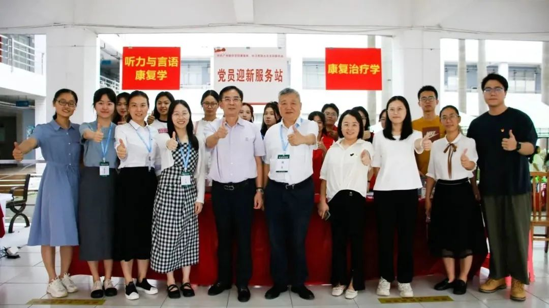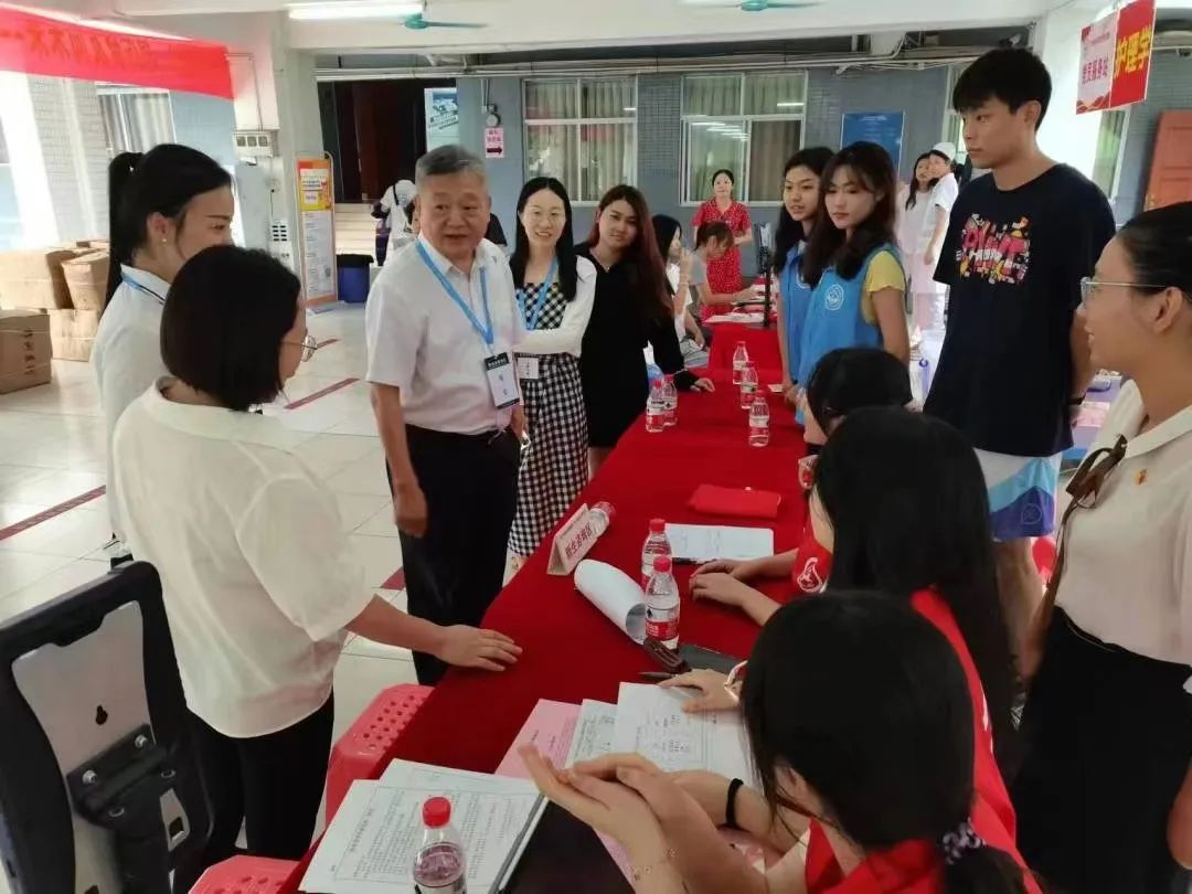9月14日上午,为了迎新活动的顺利进行,9428cn太阳集团古天乐老师和学生志愿者们一早到达迎新报到点集合,准备就绪等候新生们的到来。我校王庭槐校长亲临现场指导系的迎新工作,并对师生党员、志愿者的用心工作表示肯定。