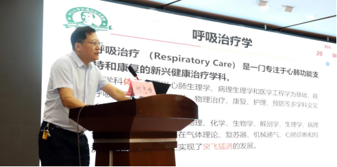▲大会主席何志捷教授做了《我省呼吸治疗专业的现状与展望》专题报告。