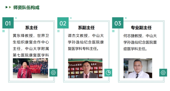 学科建设依托粤港澳大湾区医疗资源,与27家大湾区三甲医院共建实践基地,形成覆盖神经康复、重症康复、呼吸治疗等领域的教学网络。现有在校生292人,专任教师13人(含7名“双师型”教师),兼职临床教师200余人,构建起"高校教师+临床专家"的双师型教学团队。