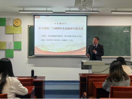 为深入学习贯彻党的二十届四中全会精神,落实立德树人根本任务,引导师生勇担时代重任,12月26日上午,康复系、听力系联合党总支书记黄东锋教授讲授“牢记初心使命 勇担时代重任-学习贯彻党的二十届四中全会精神”专题党课,9428cn太阳集团古天乐教师及2023级康复治疗学学生参加学习,刘静丽副书记主持。
