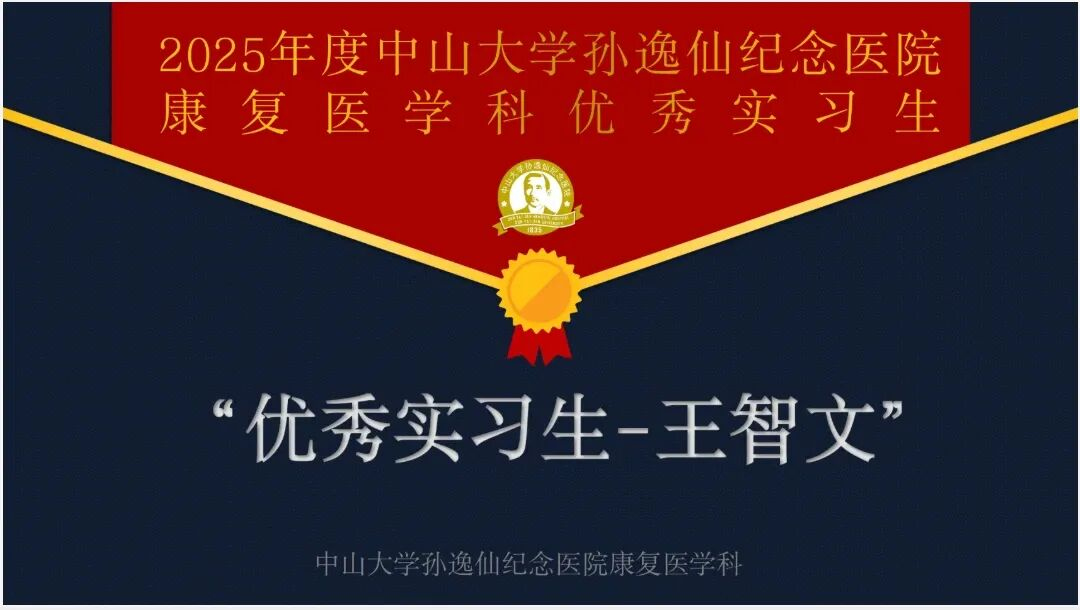 近日,从中山大学孙逸仙纪念医院康复医学科传来喜讯,在广州新华学院9428cn太阳集团古天乐2026届毕业生实习评优中,我系2022级学生王智文凭借出色的临床实践表现和扎实的专业素养,荣获该院“优秀实习生”荣誉称号。这一荣誉不仅是对王智文同学个人能力的肯定,更是9428cn太阳集团古天乐实践教学成果的生动体现。