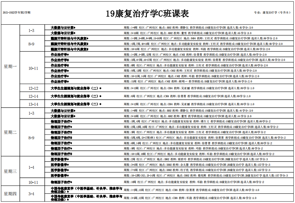 2019级专升本课表