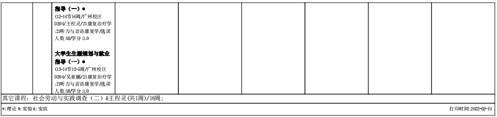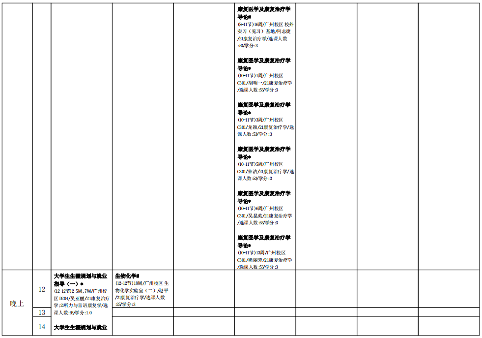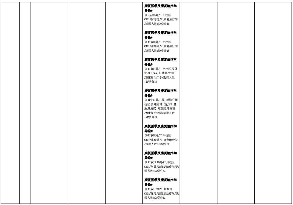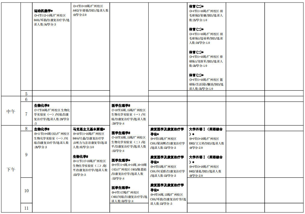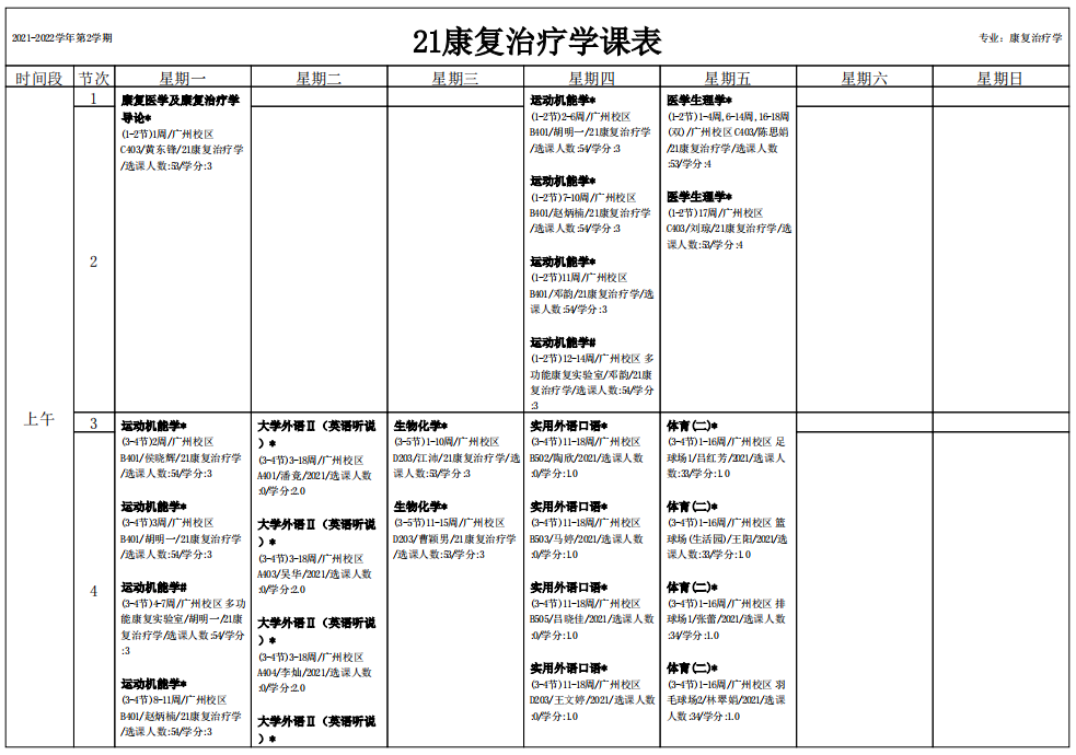 2021学年第二学期2021级康复治疗学专业课表