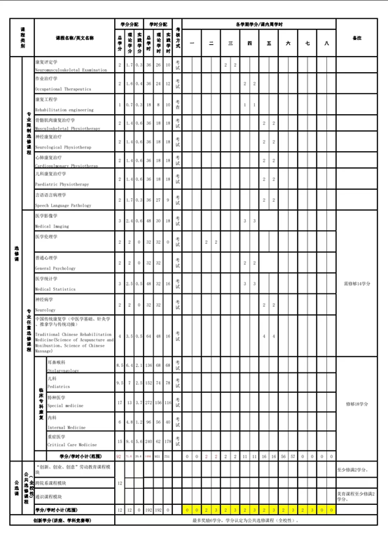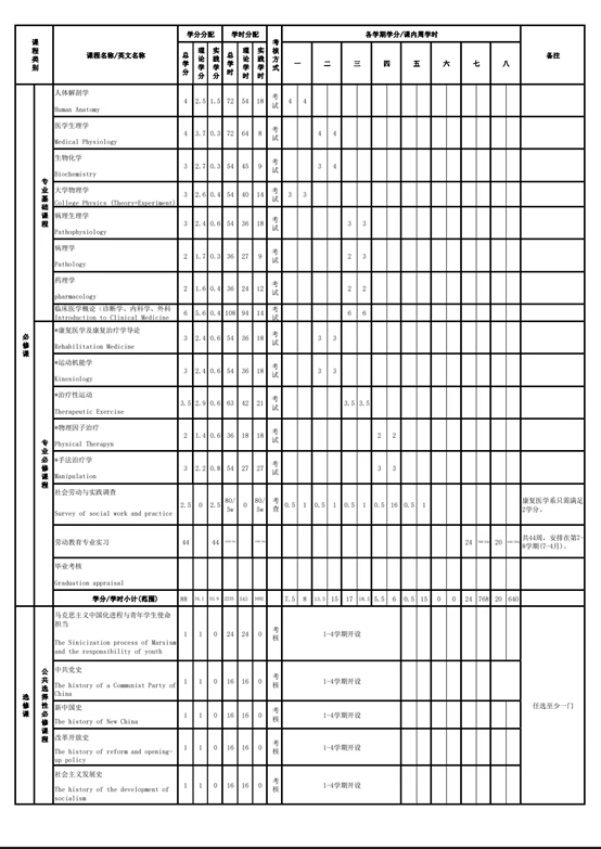 康复治疗学专业人才培养方案