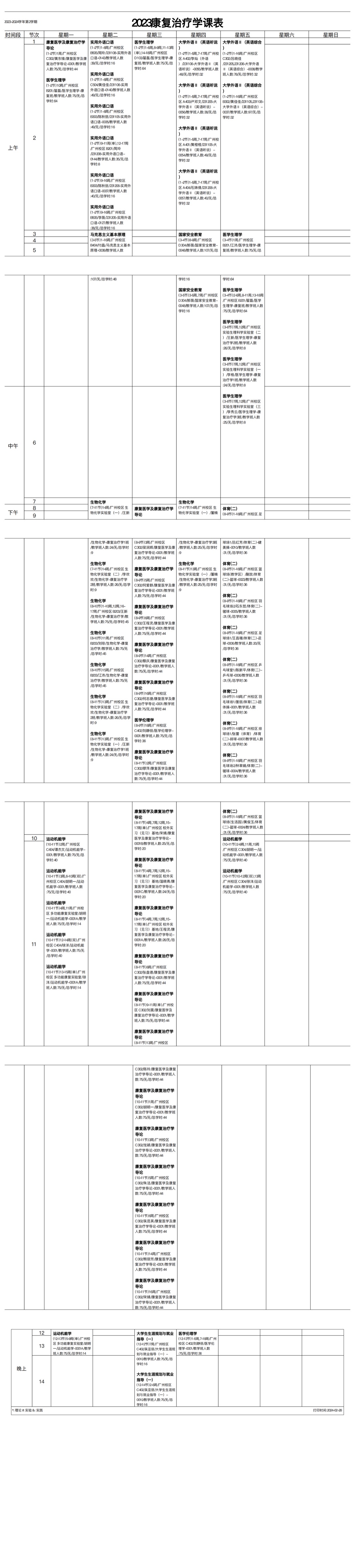 2023学年第二学期2023级康复治疗学专业课表