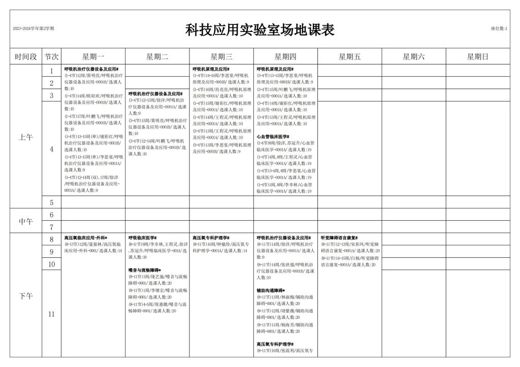 2023-2024学年第二学期科技应用实验室课表