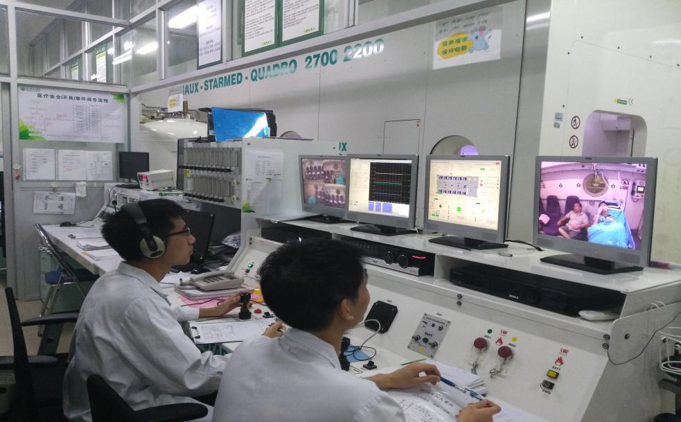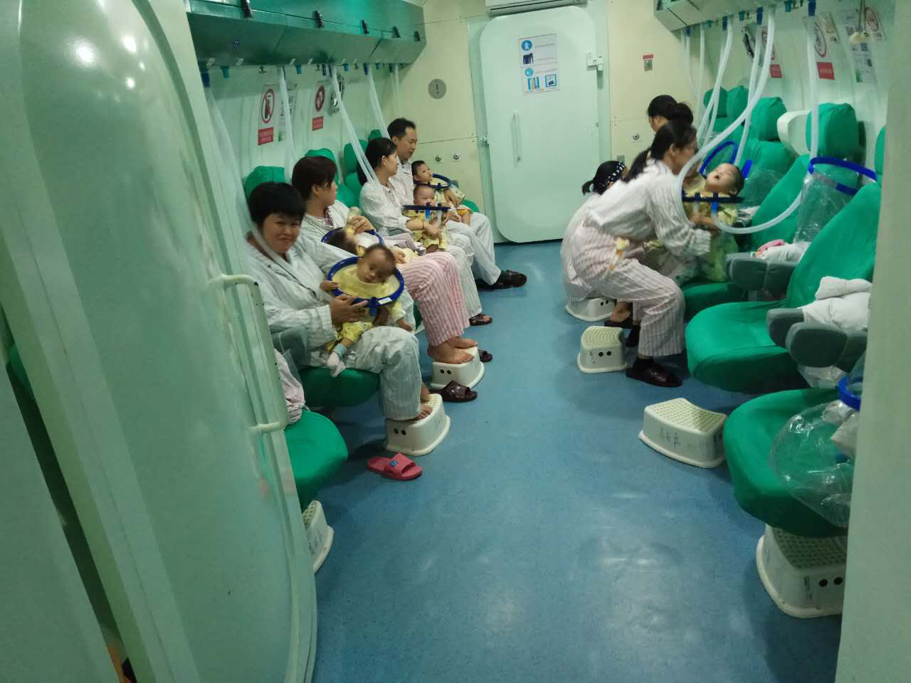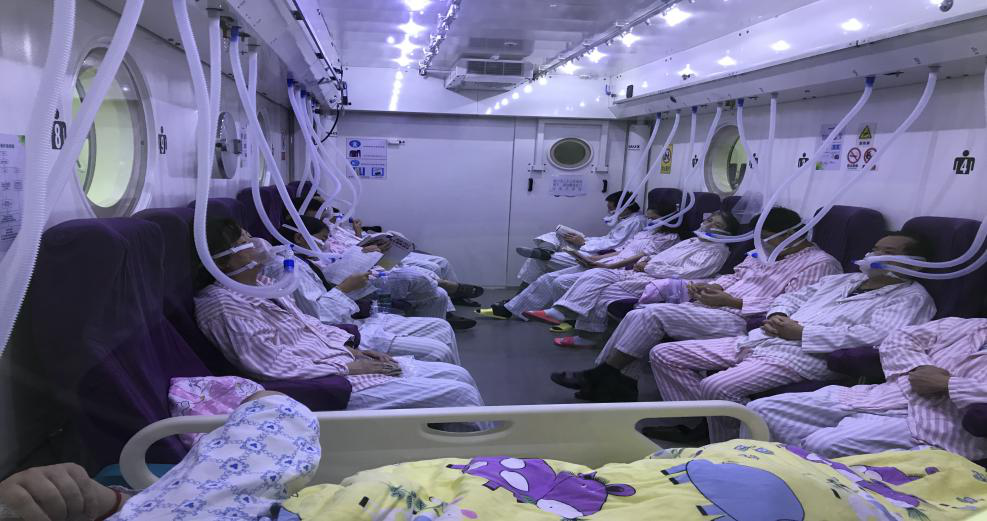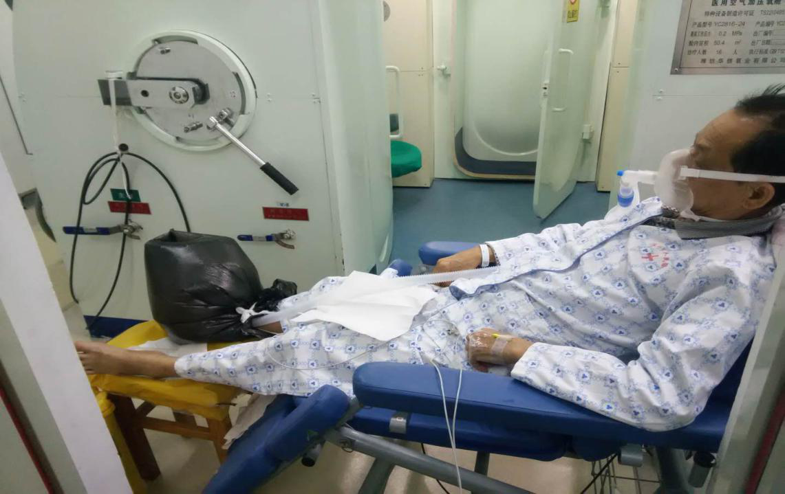 病人在氧舱内做高压氧治疗