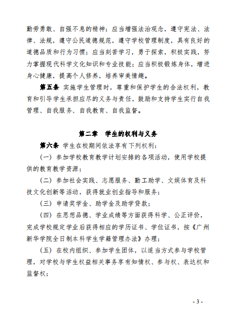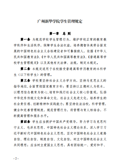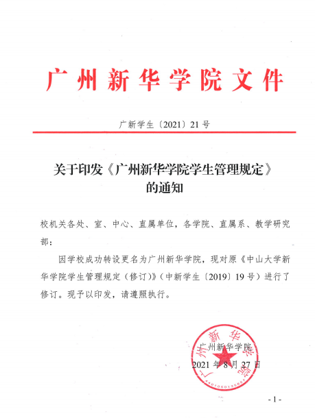 《广州新华学院学生管理规定》的通知(广新学生〔2021〕21号)