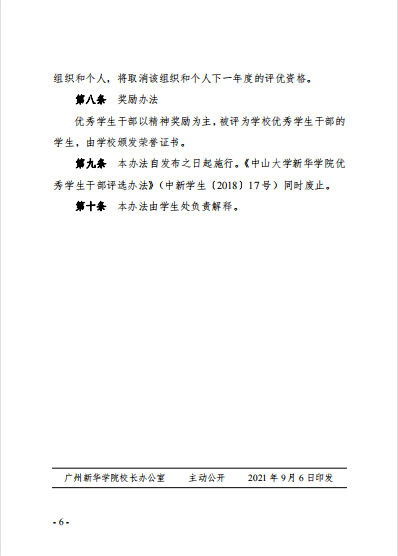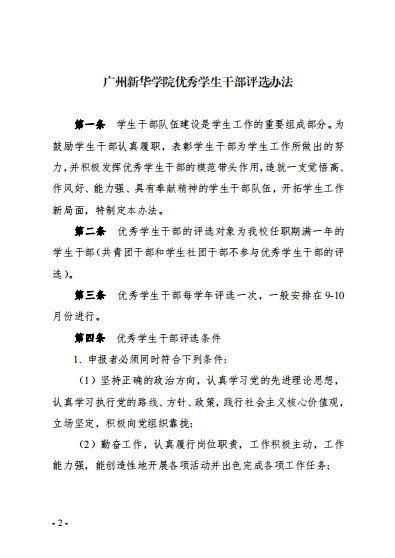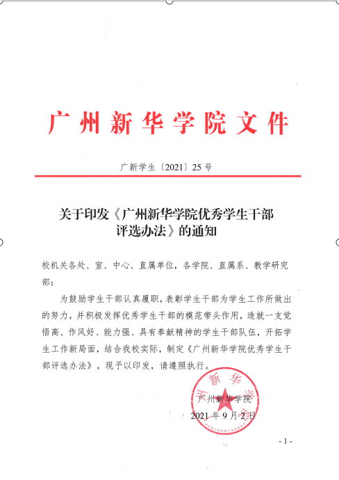 《广州新华学院优秀学生干部评选方法》的通知(广新学生〔2021〕25号)