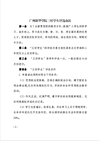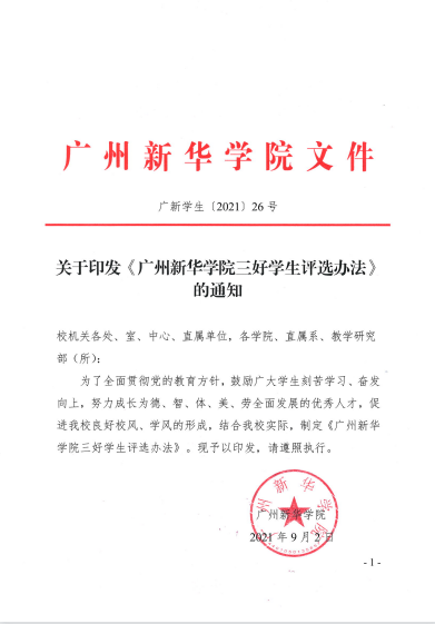 《广州新华学院三好学生评选方法》的通知(广新学生〔2021〕26号)
