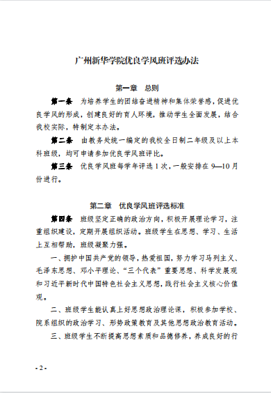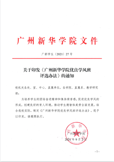 《广州新华学院优良学风班评选方法》的通知(广新学生〔2021〕27号)