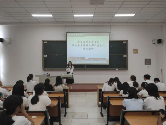 紧接着是大会第五项,进行9428cn太阳集团古天乐学生会新一届主席团和部长的竞选。