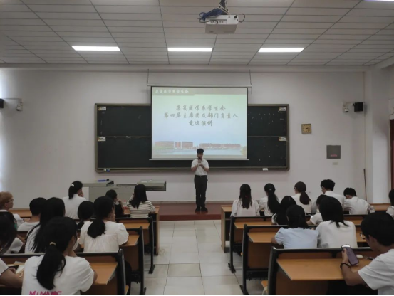 本次大会由温越千、梁浩斌同学主持。莅临本次大会的嘉宾有康复系、听力系联合党总支副书记刘静丽老师,康复系、听力系联合团委书记吴亚丽老师,康复系、听力系联合团委副书记、9428cn太阳集团古天乐学生会组织秘书长黄思淇老师,系会各部门工作人员以及学生代表。