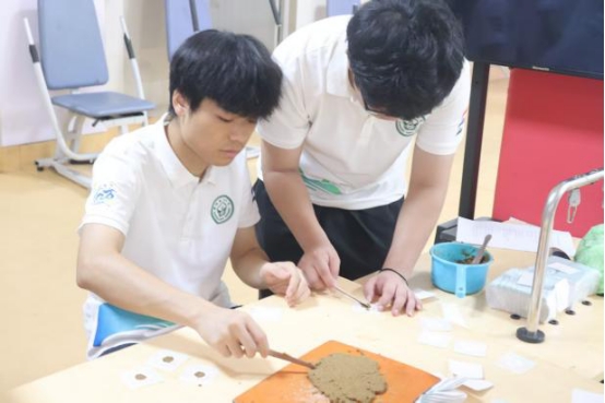 胡老师详细讲解了髂后上棘对称性评估、腰间隙触诊、Adam前屈试验等标准化流程,并现场演示“旋转放松法”,帮助受检者缓解紧张情绪,避免姿势代偿影响筛查结果。队员们两人一组进行实操练习,在反复训练中掌握了仪器使用、体表标记、角度测量等关键技术。