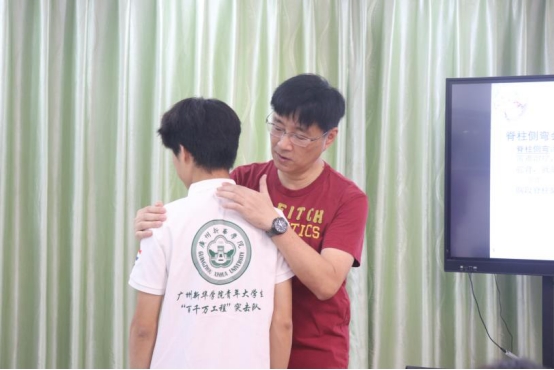 队员在郁南县第二人民医院做公益脊柱侧弯筛查