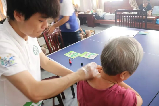 恰逢初伏,团队还特别提供了艾灸、刮痧、三伏贴等中医养生服务。队员们娴熟地为老人艾灸关键穴位、梳理头部经络,专业的服务和显著的舒缓效果,让老人们深切体验到“冬病夏治”的养生智慧。