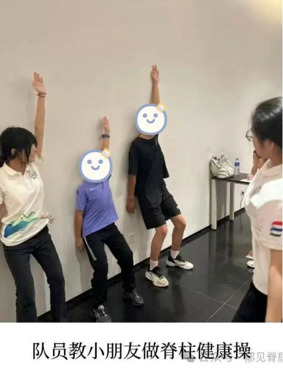 队员在金晖幼儿园帮助小朋友进行脊柱侧弯筛查