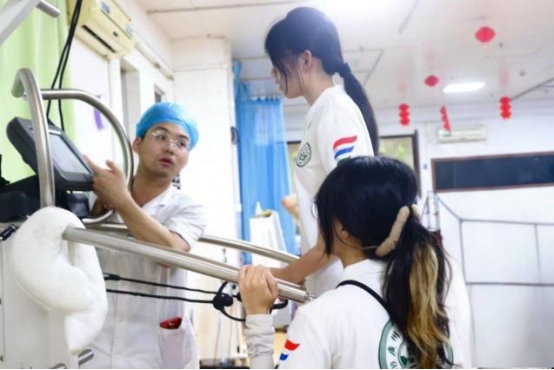 队员跟随谢晓鸿治疗师对中西医康复进行学习