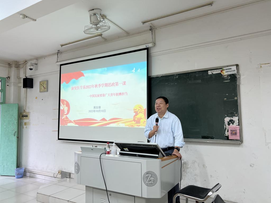 2023级康复治疗学专业史梦晨:黄东锋教授在思政第一课上鼓励2023级康复治疗学专业同学要勇担时代大任,发扬斗争精神,勇于面对未来成长道路上的各种困难。我作为一名大学生青年,要积极在大学的舞台上绽放自我,立志成为胸怀远大理想的有志青年。