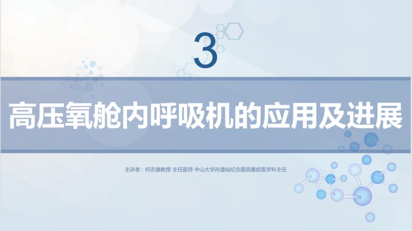 何志捷教授分享主题为《高压氧舱内呼吸机的应用及进展》的专题报告,何教授认为,高压氧舱内呼吸机的应用推动了重症医学的发展,提高了急危重症患者的存活率和治愈率。