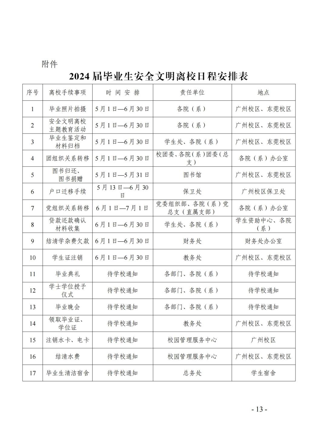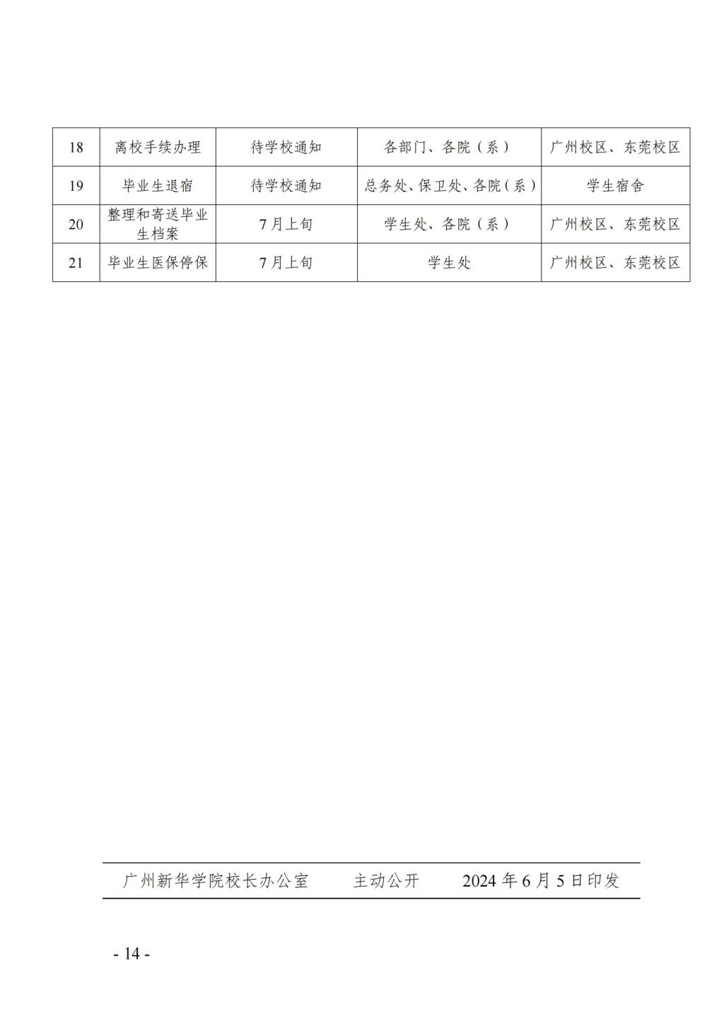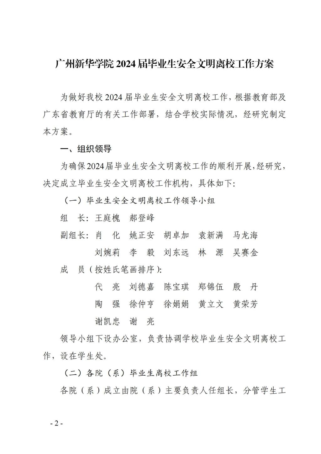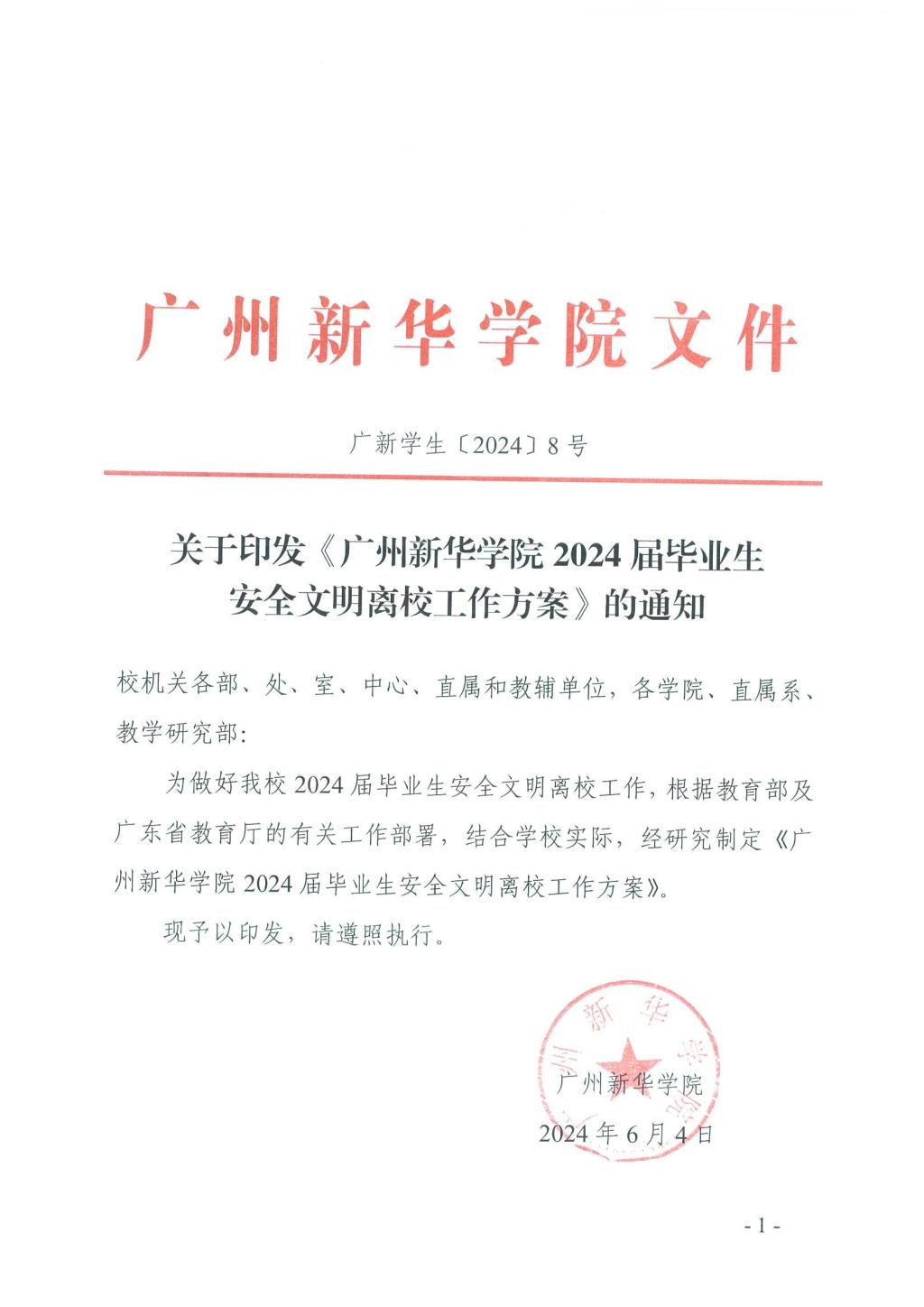 关于印发《广州新华学院2024届毕业生安全文明离校工作方案》的通知