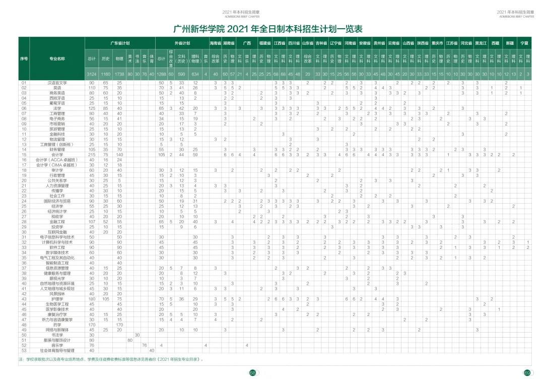 2021年招生计划(各省)